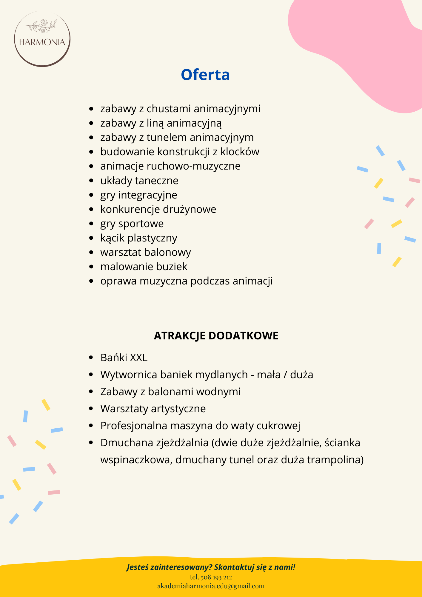 Harmonia Animacje to zespół doświadczonych animatorów, którzy zamienią każde przyjęcie w prawdziwą przygodę!